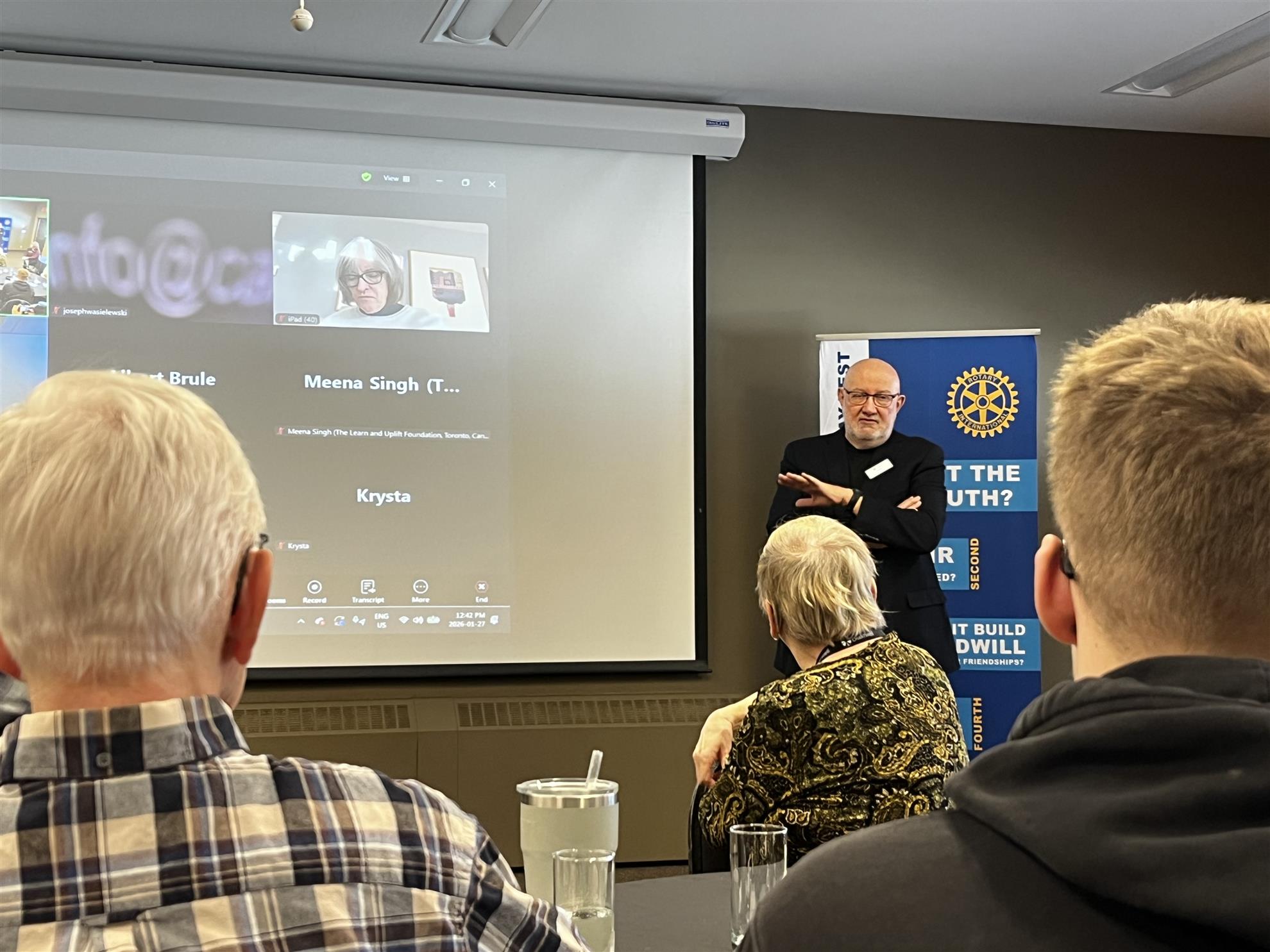 President Hector Dougall chaired a standing room crowd of members and guests on a frigid January day at the Bartley Conference Centre. Welcomed were guests John Zelinski, Dr Sudip Rakshit, Marc Laliberte, Erin and Matthew Waddington.