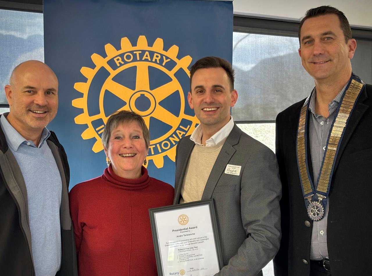 Congratulations must go to our Wine Auction Committee for once again delivering an exceptional fundraiser with auctioneer Dan Nicol at Laborie Estate on Sunday, 12 October. Excellent feedback has been received on this successful event. We have also welcomed a new member, Twané Mynhardt, into our family and we are on the verge of launching our first Rotaract club.