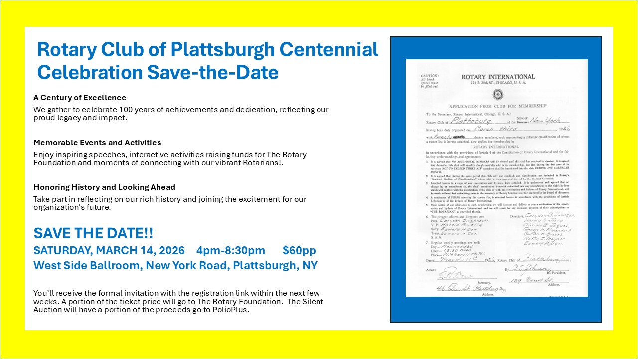 This year, The Rotary (Noon) Club of Plattsburgh teamed up with the Rotary Club of Plattsburgh Sunrise to raise funds for RI's effort to eradicate polio.