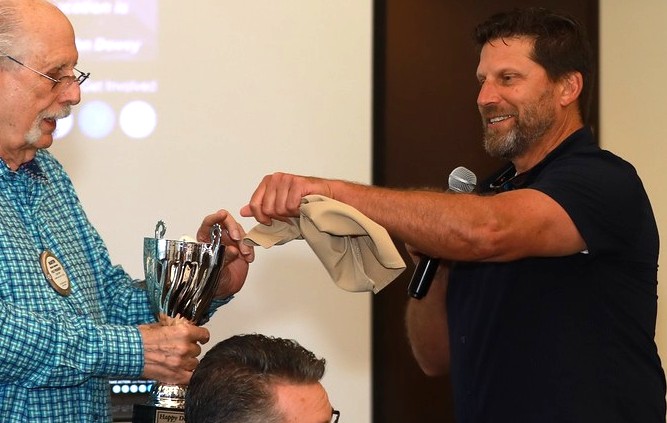 After his talk, President Darin thanked District Governor Dutra for being there and had him sign a book that will be donated to a title one school in his honor.