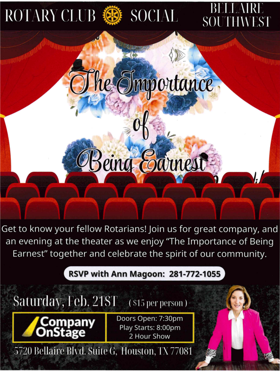 Must RSVP for tickets to Ann Magoon 281.772.1055 (group tickets will be purchased)