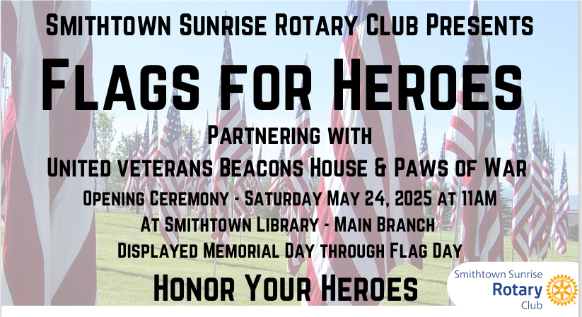 For more information about the Smithtown Sunrise Rotary Club and its community service projects, please visit SmithtownSunriseRotary.com or contact SmithtownSunriseRotary@gmail.com