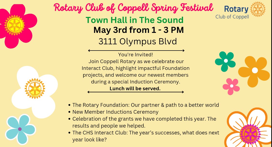 Contact Suzy Cravens at rotaryofcoppell@gmail.com