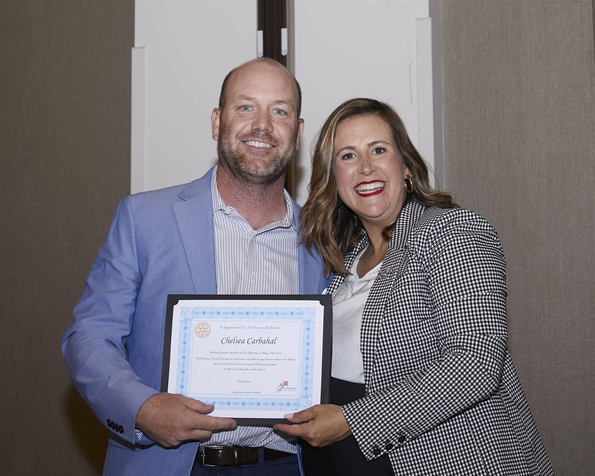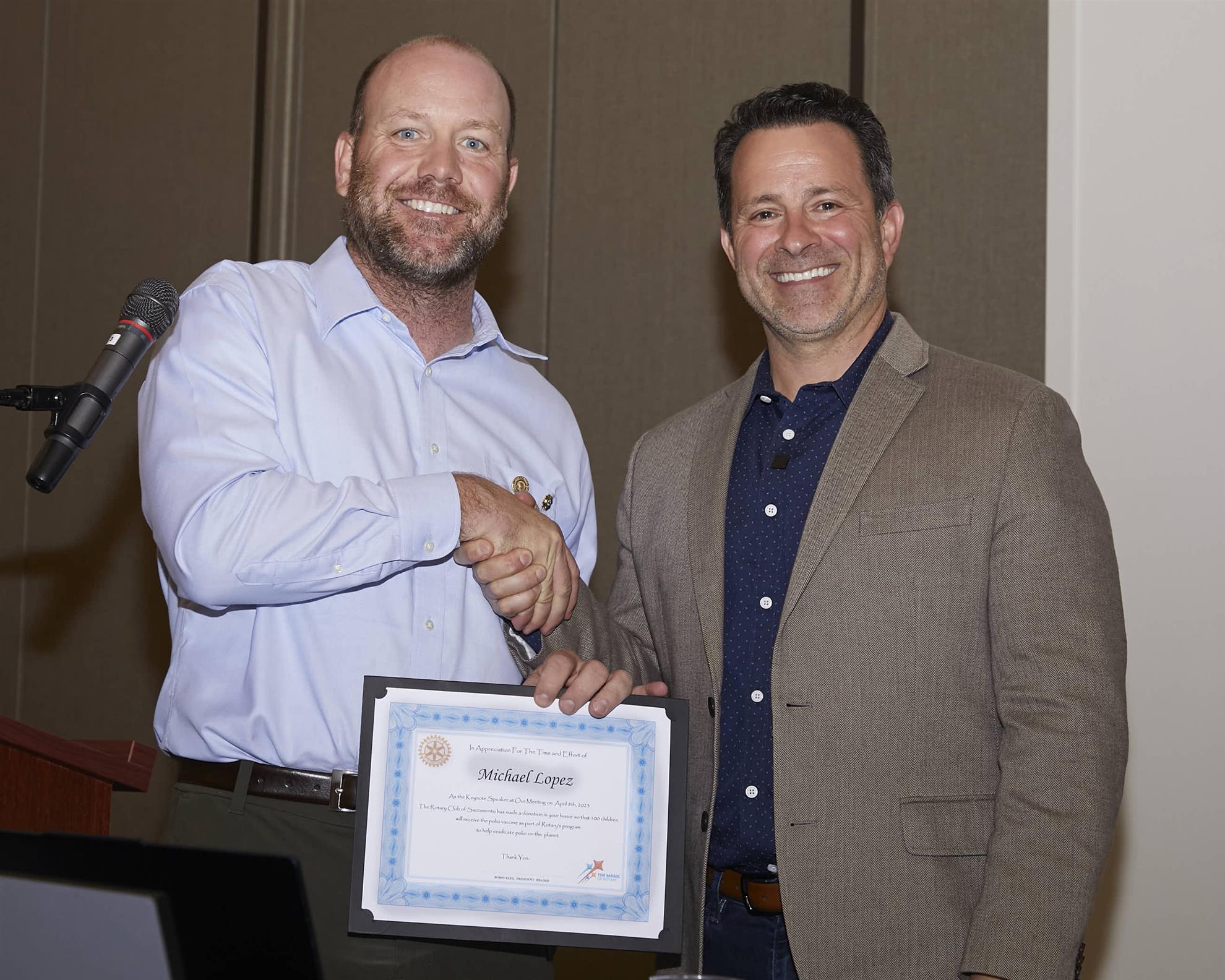 David closed out the roasting session with more of a highlight reel than a roast, giving props to Bobby’s impressive push for new membership (35 new members was a big goal!) and a jump in service projects. Basically, Bobby was crushing goals while dressing like he was still waiting for his Uber to a Kings game.