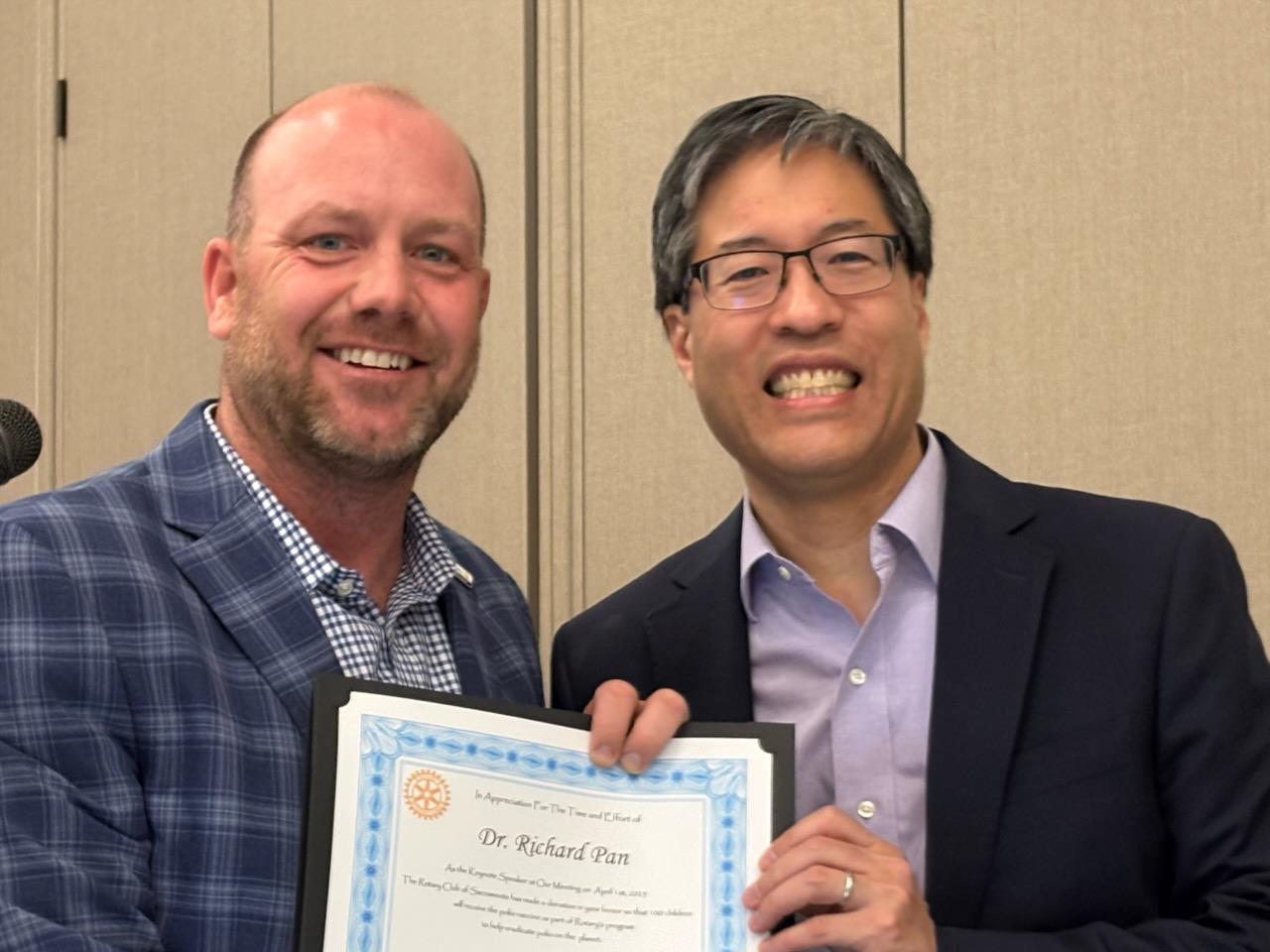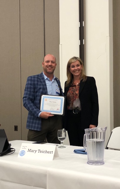 In true Rotary fashion, President Bobby was awarded a plaque and some gift cards to his favorite tap room and sports store. A gift card to Men’s Wearhouse was seen as wasteful.