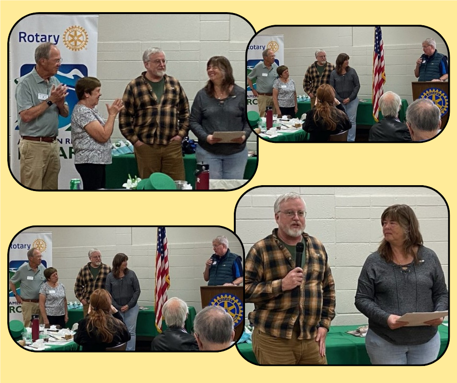 It's always a great pleasure to welcome new members to our club! And, we have two new members -- Tracy and Darrin. We had fun pinning them (with their new Rotary pins!) during one of our Wednesday club meetings. They are such a great addition to our club and we are delighted to have them join us for Service Above Self and being People of Action!