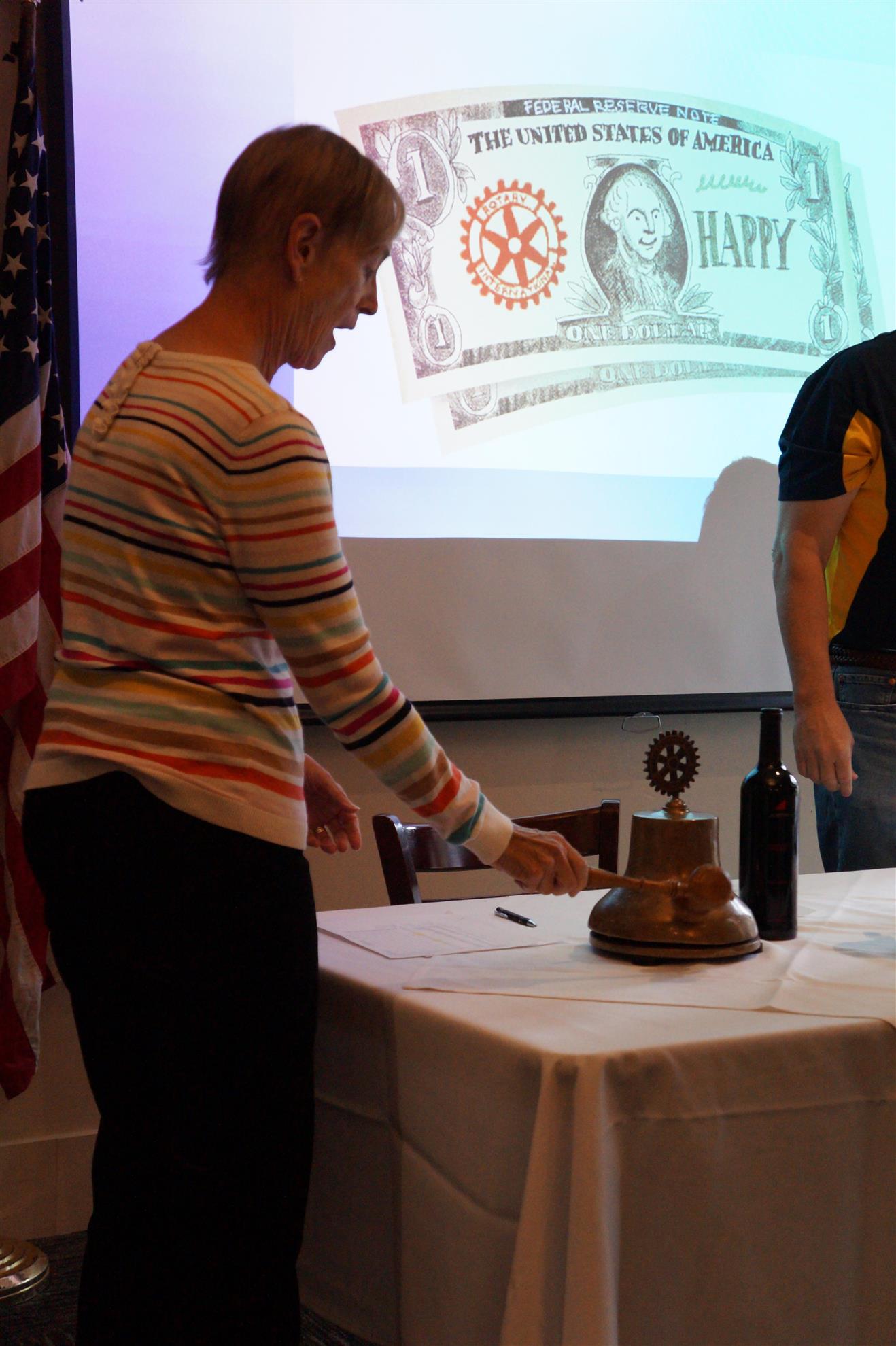 He then thanked everyone for coming to the best damn Rotary Club in the world, if not the universe, and adjourned the meeting by ringing the bell and closing the meeting at 1:02 P.M.