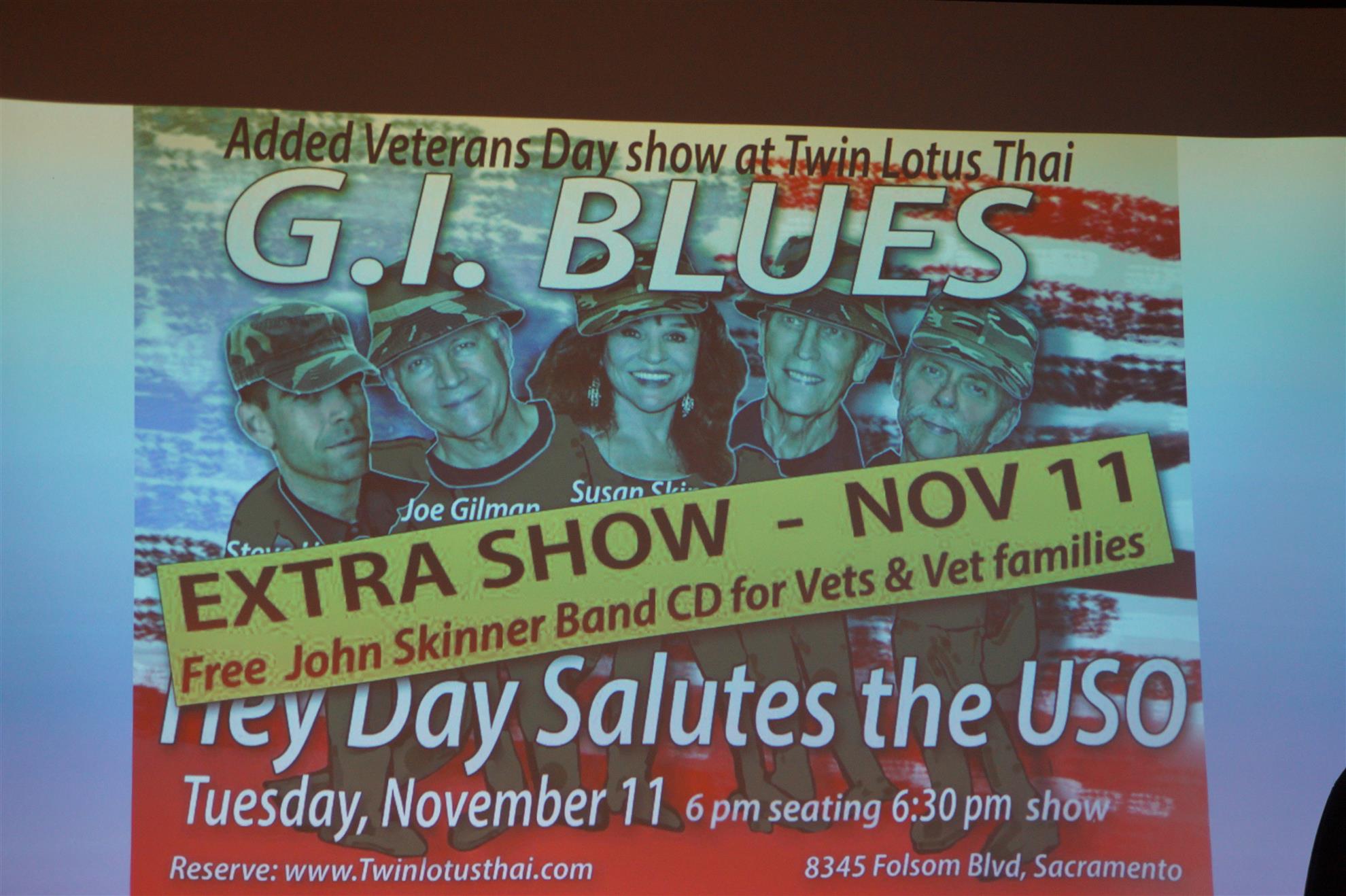 Christine Jensen shared that the John Skinner Band is doing a little thing just to help support the veterans. She is sharing this because we've worked with Susan Skinner in the past. Susan works with Carmichael Times and she's covered our club a lot and done some great photos of our group.