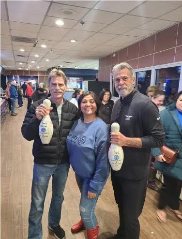 Rotarian ringers Larry McGrew & Randy Davis proudly display their trophies at the 10-20 Club Bowling Tournament. Mel Sanchez shares their win!