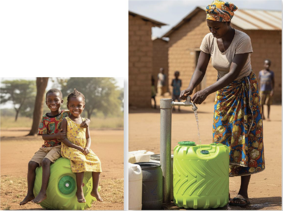 Now comes the next chapter: the ECOroller Scaling Project. Rotary clubs in Canada, the USA, and Southern Africa are working together—supported by the Rolling Water Foundation—to bring affordable, durable 70-litre EcoRollers to communities facing water scarcity. These rollers reduce the daily burden on women and children, support family gardens, and help girls stay in school.