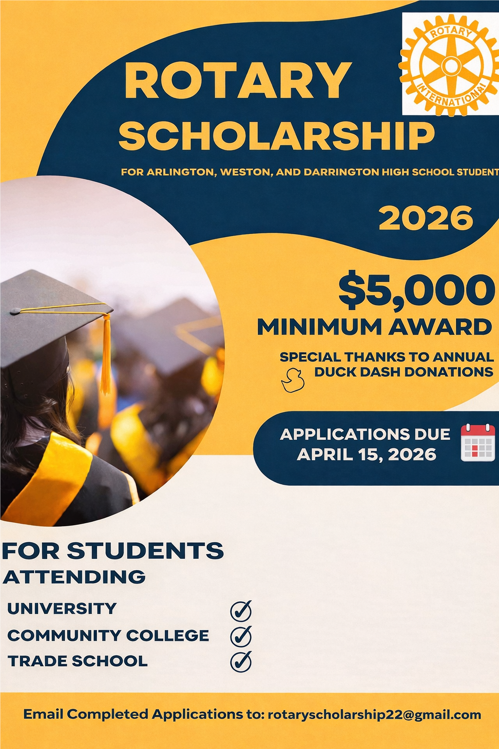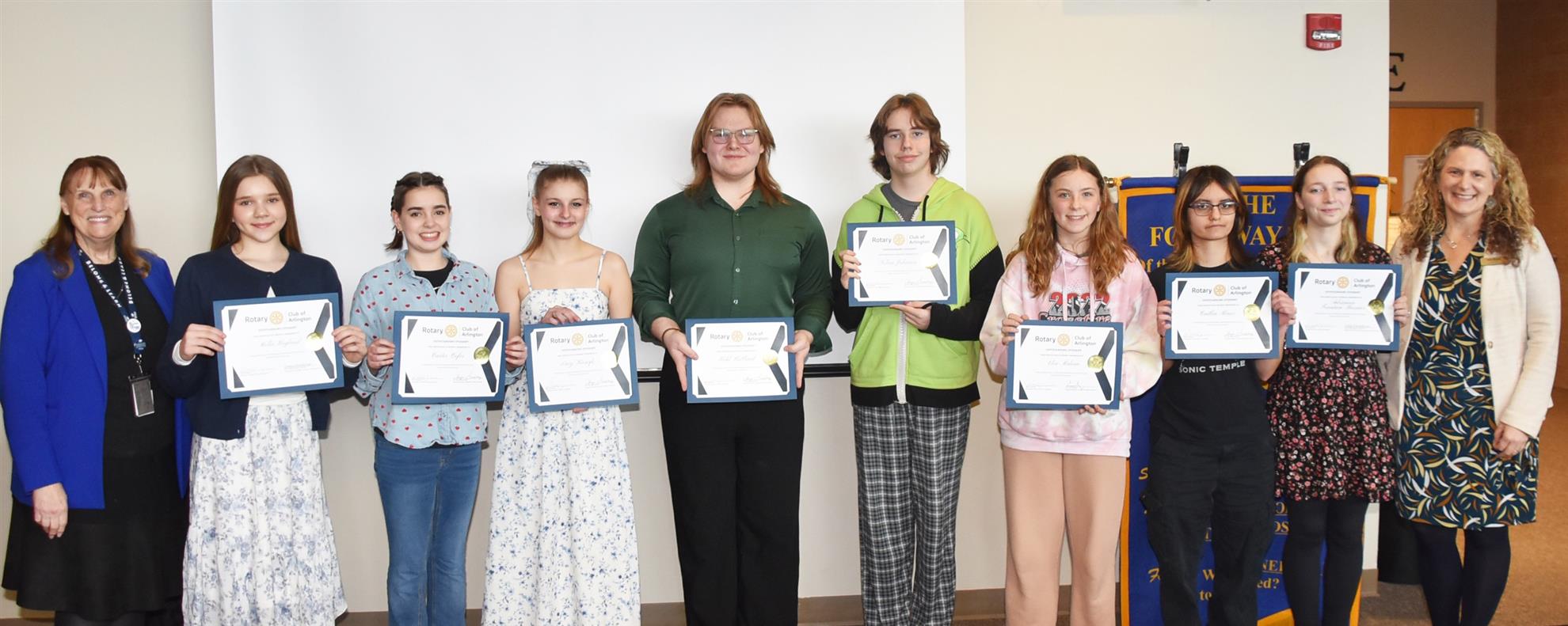 Twice per year, our club honors students selected by their school staff as outstanding. On January 29, our club hosted students, their families, and school staff from middle and high schools across the three school districts. With funds generated from the club's annual Duck Dash fundraiser, each student recognized a charitable organization to receive a $100 donation from the club.