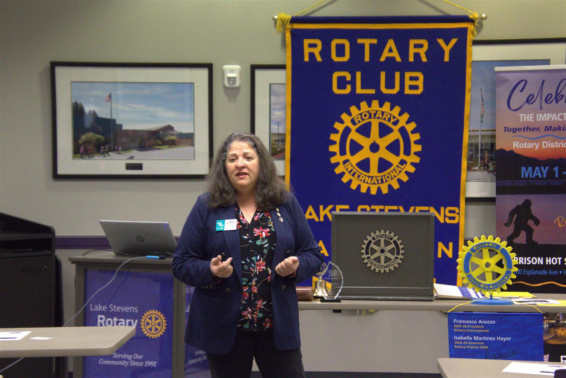 Our Club had a fantastic visit with District Governor Isabelle Martinez Hayes on Friday, November 14th. Mixing Rotary International and District 5050 activities along with a history of our Club activities since out club's inception on June 18, 1991. A perfect setting for our new members as well as our longer term members to remember all that we have done in Lake Stevens including recounting some of the major projects and fundraisers including comments about our former Duck Dash fundraiser and now our current Corks and Kegs successes.