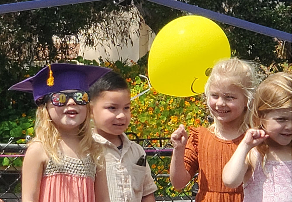 Rotarians, Bernadette Bagley, Roger Davis, and Murray Ray joined President Tony Morris to celebrate students graduating from the Montecito YMCA preschool program. Parents and friends cheered for the graduates as they sang songs celebrating their time at the preschool and signaling their excitement at moving to the next stage in their education.