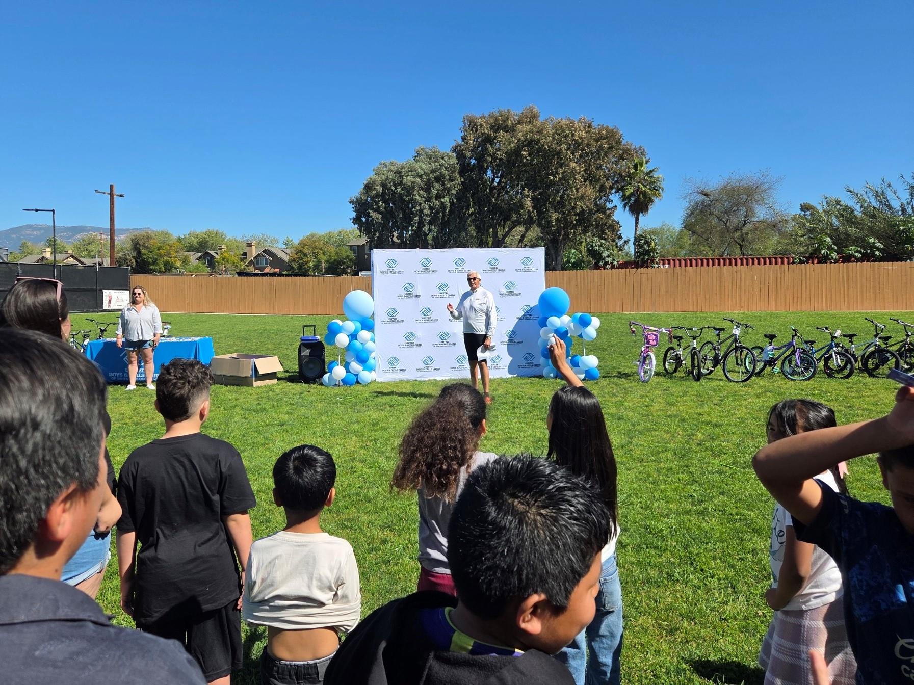 The excitement continued the following day at the United Boys & Girls Clubs’ Goleta Center, where the bicycles were officially distributed to their new owners. The celebration began with remarks from the Club’s Chief Development Officer, Taylor Swan, followed by Kirk sharing what inspired him to launch Bike4Kids and how the generosity of more than 80 donors turned miles ridden into support for local youth. After the brief program, kids gathered by club location, eagerly choosing their brand-new bikes and helmets and adding colorful stickers to personalize them. Within minutes, many were riding around the grassy field testing out their wheels.