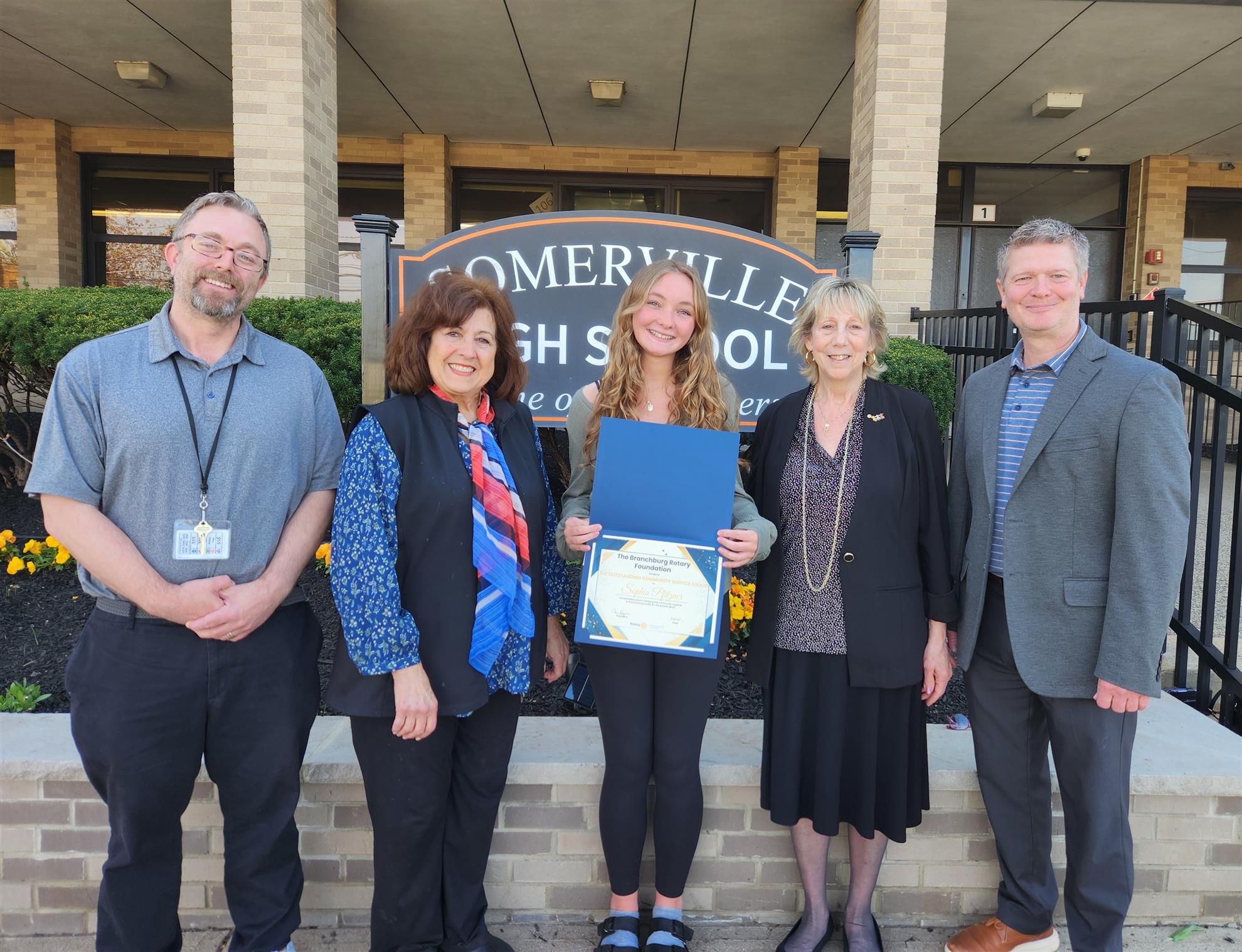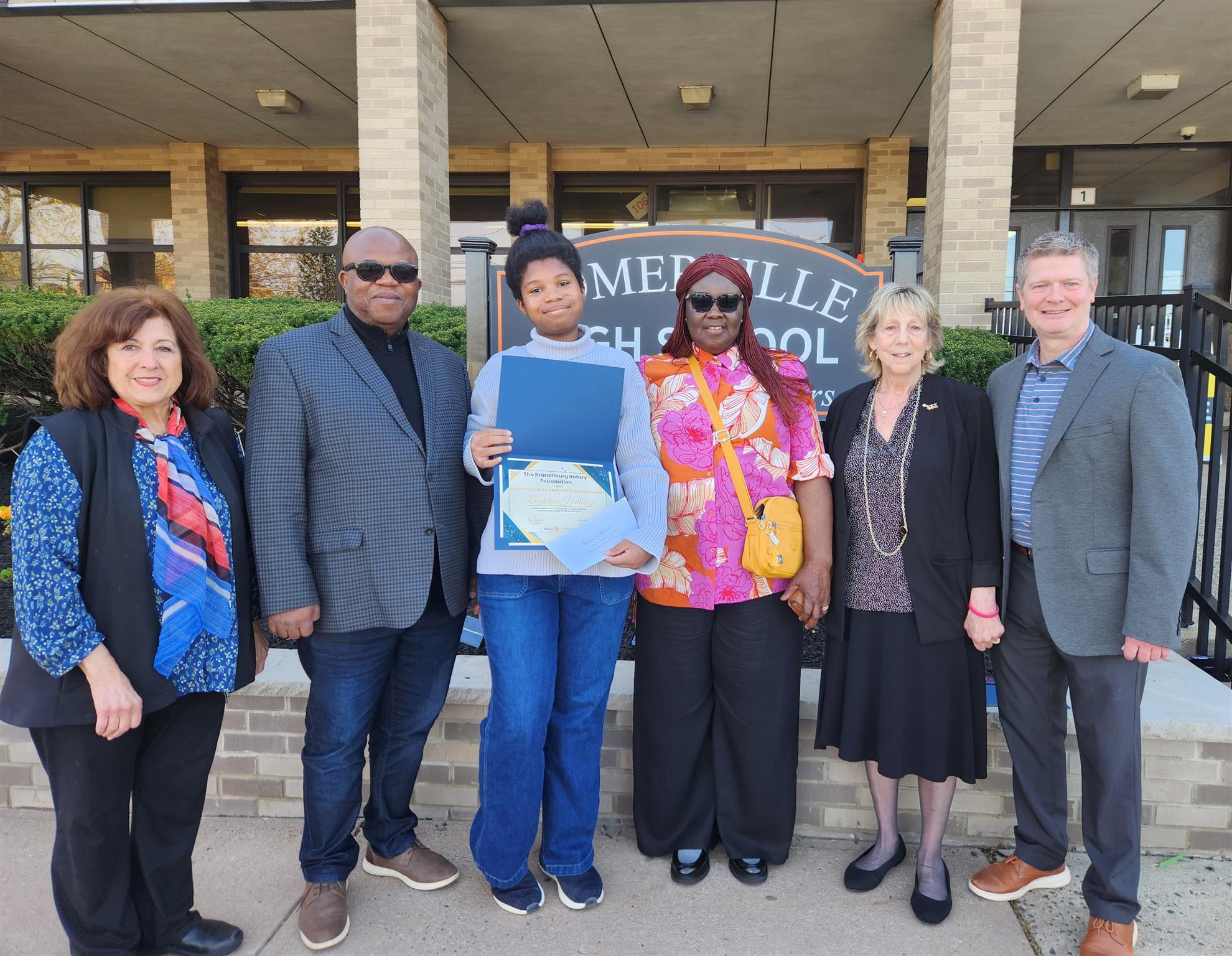 In photo Rotarian Joe Horner, Val DiGiacinto (Welcome home Vets NJ), Michael Boll (NJ Veterans Network), Ruth Nortje (Horses for Forces), Ted Wurster (Operation Jersey Cares), Rotarian Julie Ann Juliano, Club President Maria Donegan