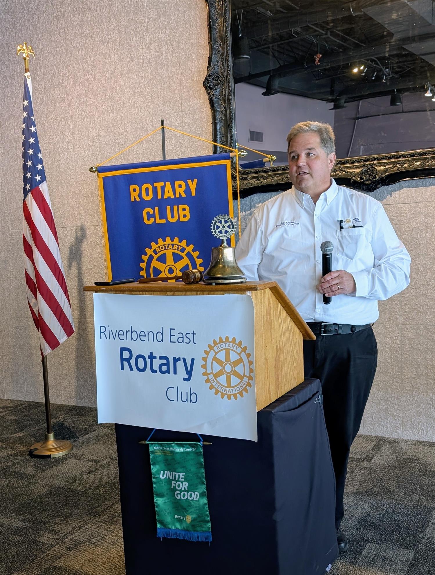 Welcome to our club web site. I'm Mark Smith, Club President for the 2025-26 Rotary year. Our club was created on January 1, 2021 when the former Wood River and East Alton clubs merged to become the Riverbend East Rotary club. Feel free to browse our newsletters, photo albums and other content you may find of interest. The club also sponsors a Facebook page. You may link to those sites below and to the right. Our club is located on the Illinois side of the St. Louis, Missouri metropolitan area. When you are in the area, please feel free to attend one of our meetings.