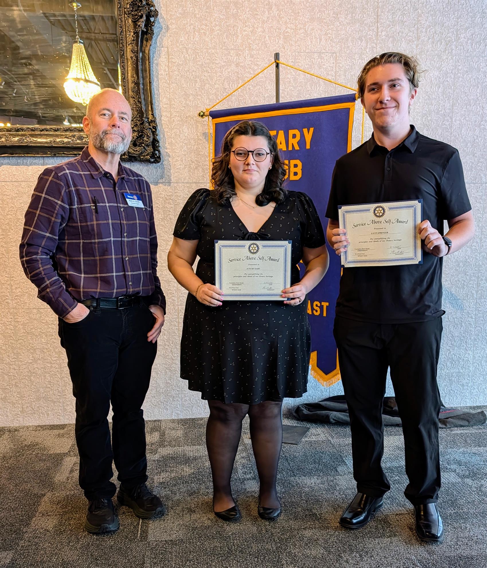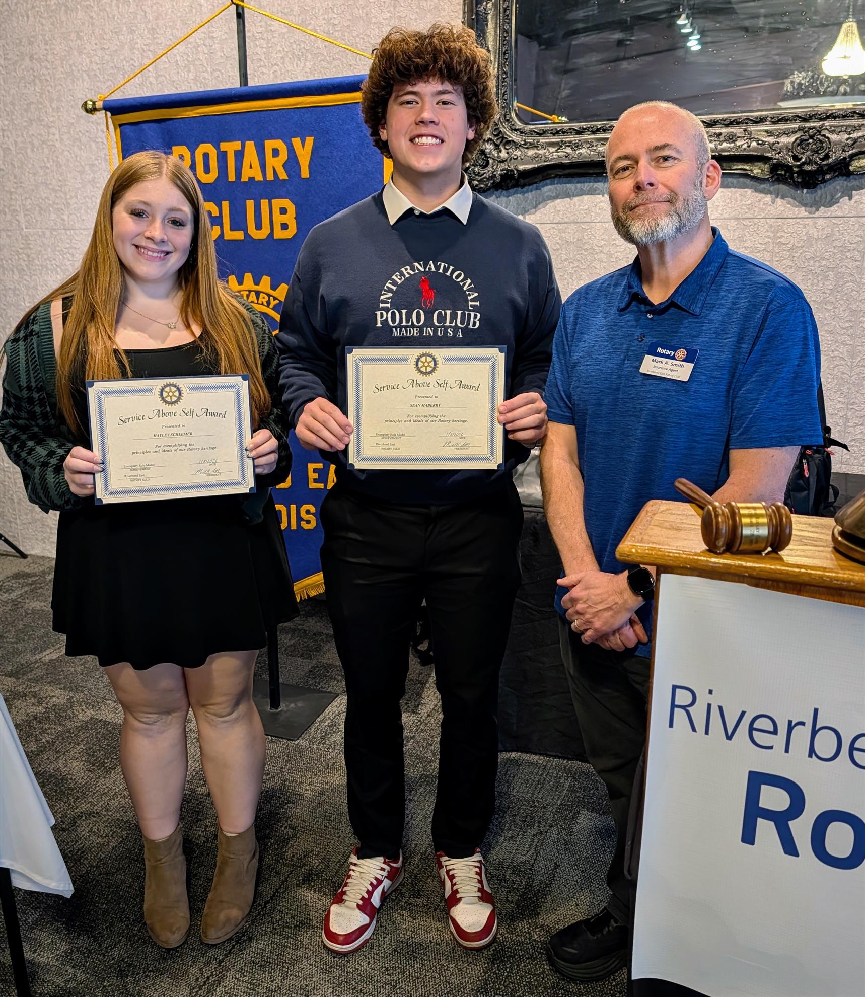 Club President Mark Smith presents Service Above Self certificates to Haley and Sean. Continue reading below.