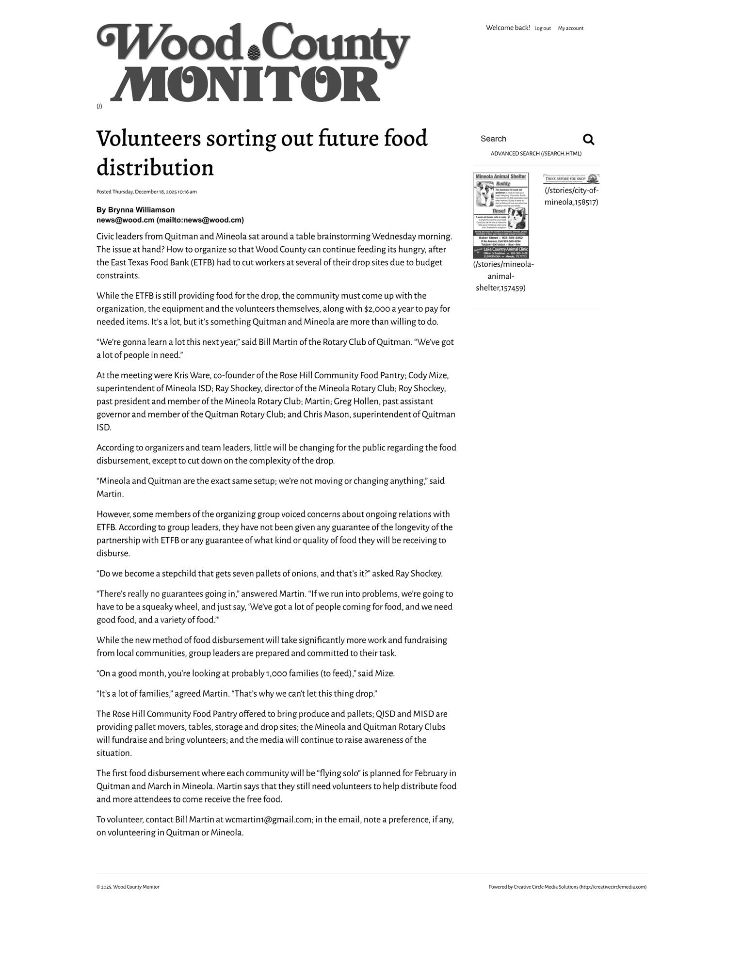 Here's the December 18, 2025 Wood County Monitor's article: