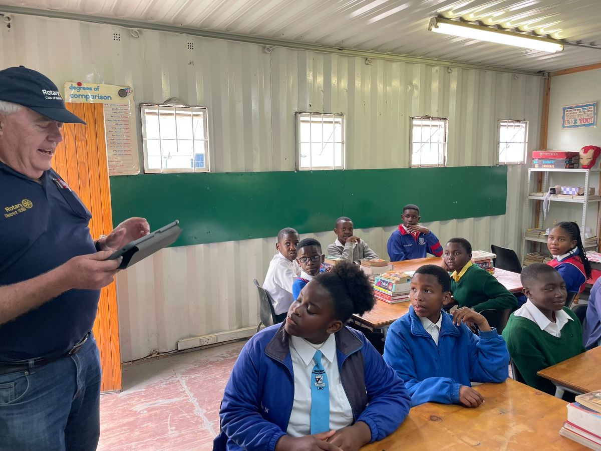 Club President Norman Leach with Serena Bulesic and Club Youth Services Representative, Carin Jansen van Vuuren