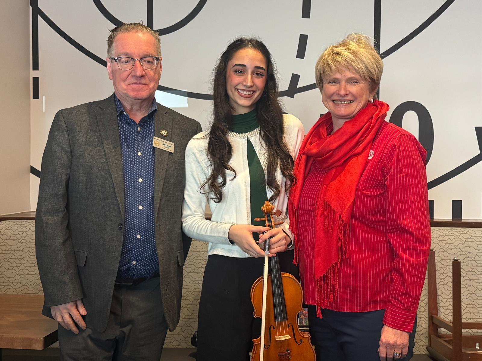 This week we were pleased to welcome Serena Bulesic, a recipient of our Student Scholarship that was awarded at our 50th Anniversary Dinner this past June. Serena is a very promising musician who wished to continue her studies in Violin at the University of Alberta. She came to tell us about what she has been doing recently. She is currently a student of Music at the U.of A. and is also studying with the concert master of the Edmonton Symphony. Over the summer and fall she also took several master classes with various well known violinists in both North America and Europe. She told us that she has learned so much from each one, especially how to think, to focus, and the discipline and organisation necessary to succeed in this field, along with technical skills such as various bowing techniques. She feels that she has made tremendous progress in the last two years, especially because of all the different people she has worked with. This summer she has plans to go to Spain to study with a master there.