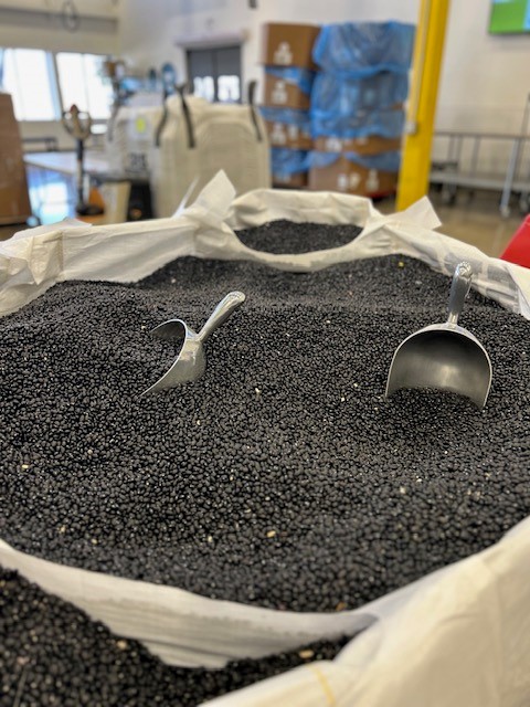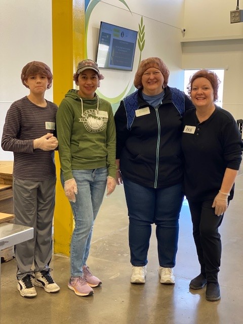 Volunteers scrubbed up and donned hair nets, beard nets, and gloves and each phase of the packing process was taught to all who attended. Opening pallets, weighing, measuring, sealing, counting, and boxing were all steps in the process to provide black beans to other food service organizations. It was exciting to ring the brass bell to signal an entire pallet boxed up and ready for distribution!