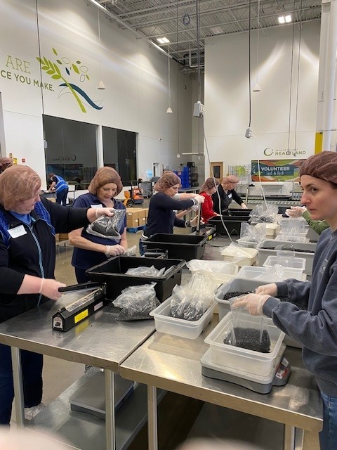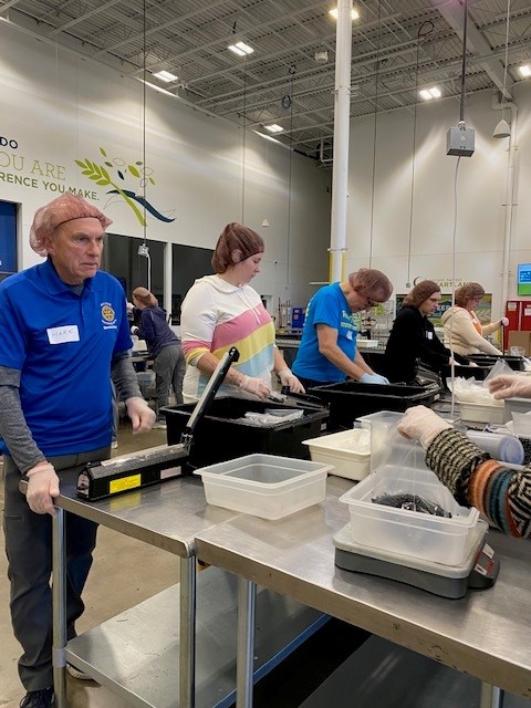 On March 9, 2024, Rotary District 5950’s community service Food Packing event was held at Second Harvest Heartland in Brooklyn Park. Twenty-four Rotarians representing several area clubs assisted volunteers and packed over 2,540 pounds of black beans. That’s 105 boxes of beans, with 24 bags in each box.