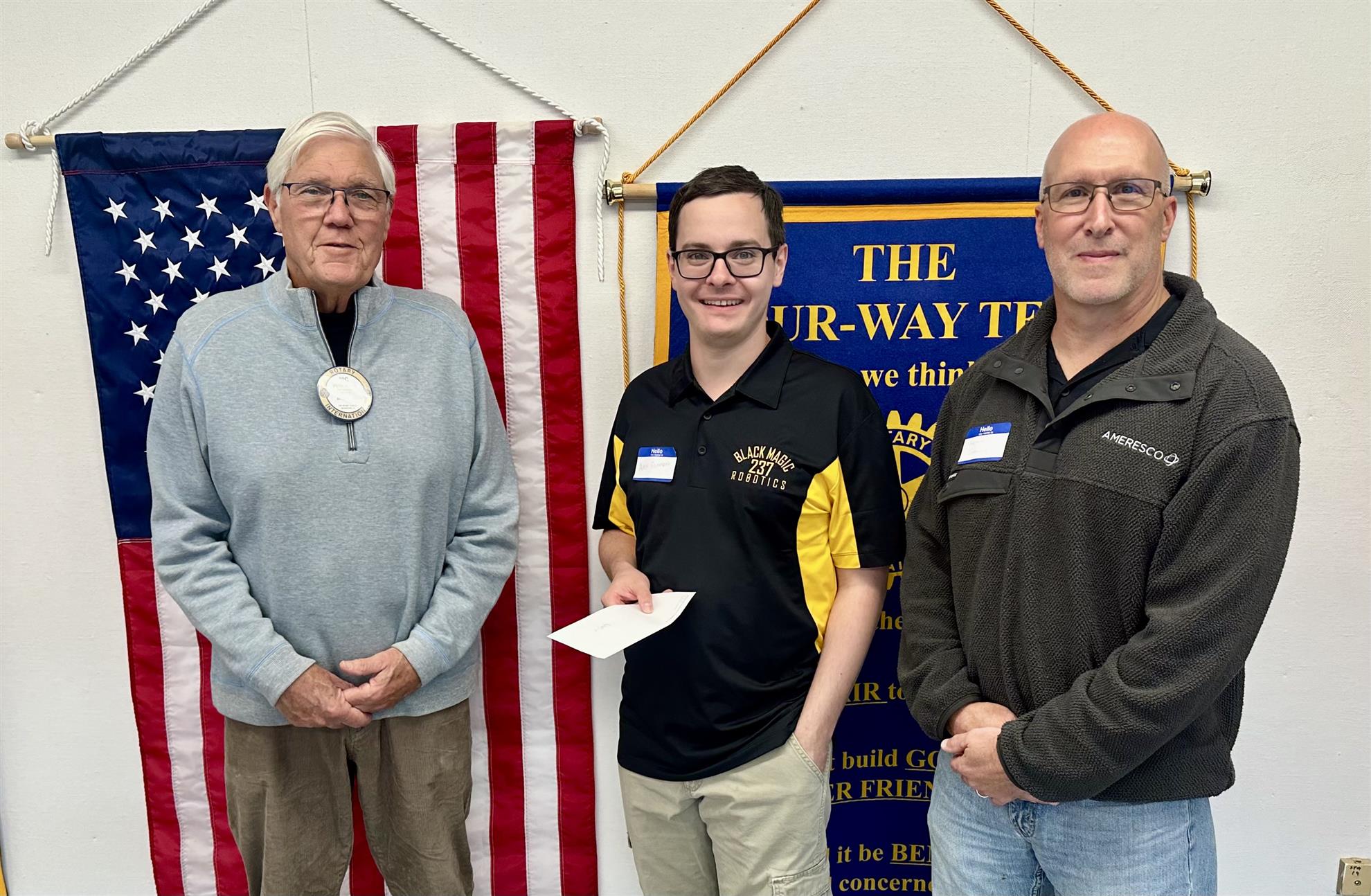 Senior Robert Ernst (left) Rotary Club Representative Giannetto (middle) and junior Ryan Nolan (right).