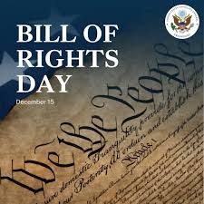 On December 15, 1791, the new United States of America ratified the Bill of Rights, the first ten amendments to the U.S. Constitution, confirming the fundamental rights of its citizens.