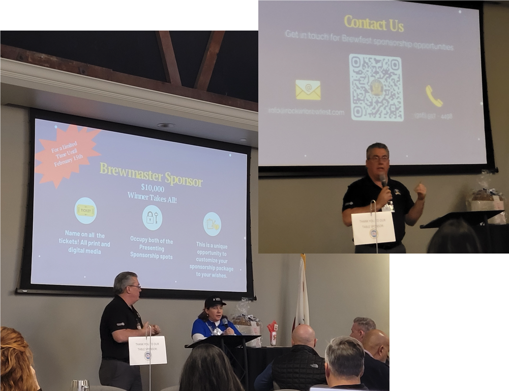 Randy and Stacey presented at the Roseville Chamber of Commerce luncheon last Tuesday to get the word out about Brewfest and sponsorship opportunities. We are offering a unique opportunity for a business to occupy both presenting sponsorship spots.