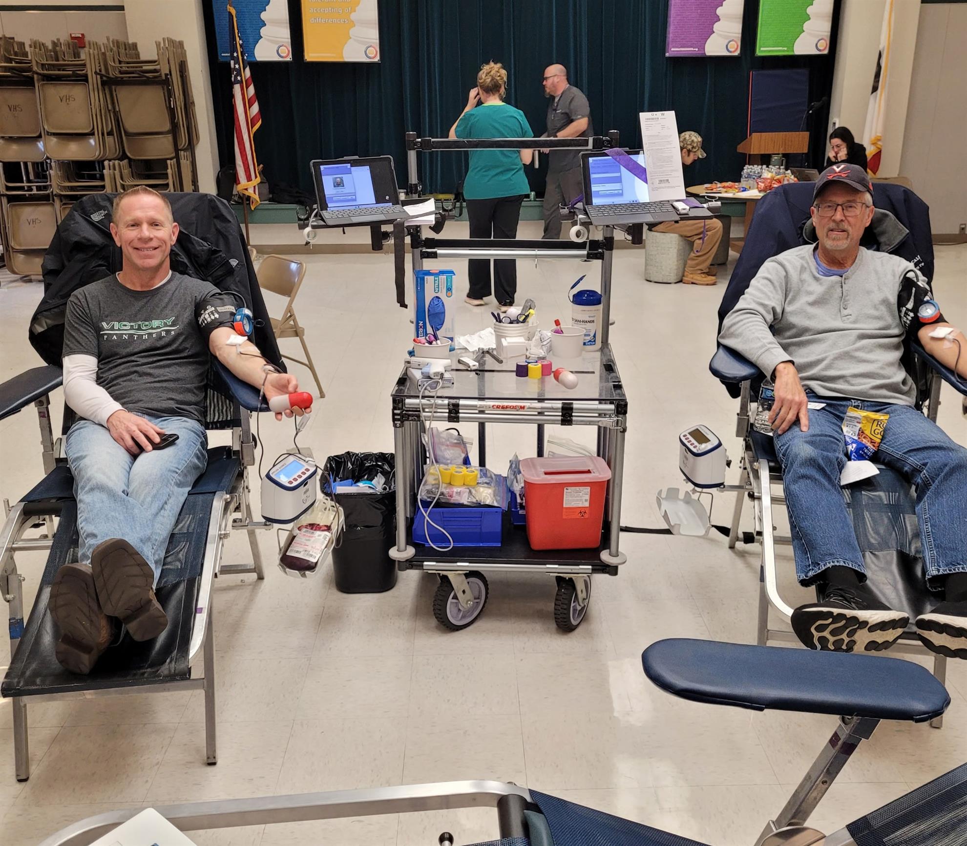 Scott & Chris donating blood last at last year's event