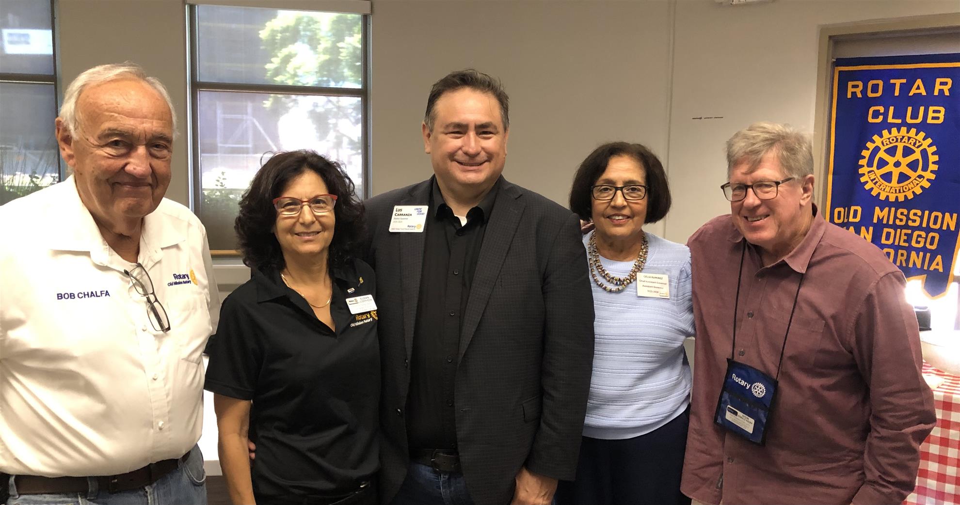 Photo: (L-R) Club International Service Chair Bob Chalfa, Club President Susan Josephson, District Governor Luis Carranza, Celia Ramirez who serves as the District 5340 Chief Assistant Governor (South) and club program chair Don Krupp.